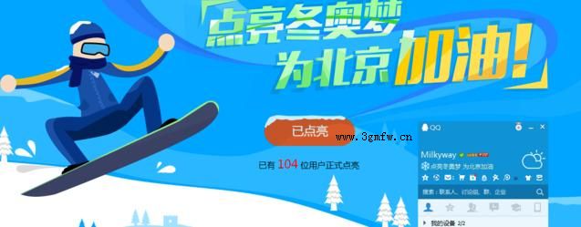 在2022年冬奧會(huì)的舉辦權(quán)揭曉之前,騰訊體育特別推出“加油北京”點(diǎn)亮申冬奧圖標(biāo)的活動(dòng),每一位QQ用戶都可以點(diǎn)擊進(jìn)入活動(dòng)頁面(http://sports.qq.com/iski/gobeijing/),點(diǎn)亮申冬奧專屬“雪花”圖標(biāo),讓你的簽名炫起來!同時(shí),騰訊體育將連續(xù)20天每天送出500Q幣,只要您參與點(diǎn)亮活動(dòng),就有機(jī)會(huì)獲得!