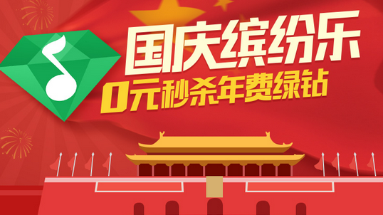 QQ綠鉆國慶繽紛樂 0元秒殺年費綠鉆活動