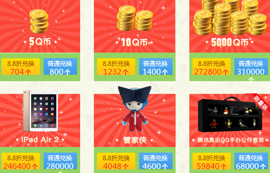 奧運幣兌換禮包:QQ瀏覽器兌換尊享8.8折優惠