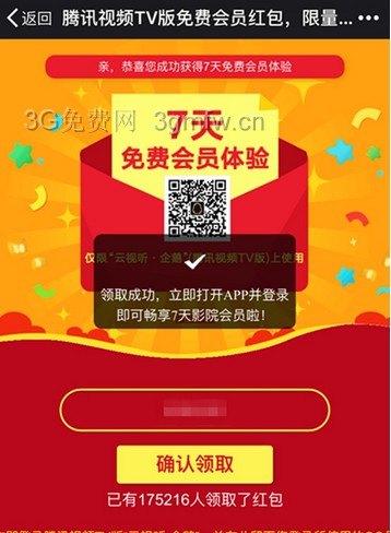 會員2:微信掃碼領7天騰訊視頻免費會員