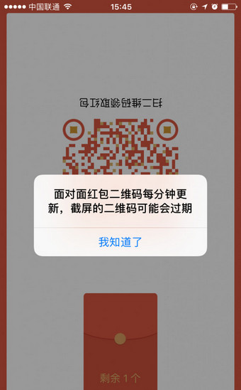 在體驗該功能的過程中可發現,發紅包的用戶手機中的二維碼每被掃描一次,該用戶手機界面的紅包就會“飛”出去一個,和真實的發紅包場景十分接近。