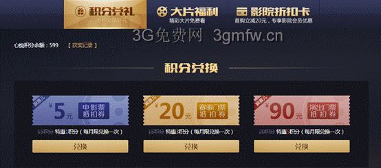 1. 積分比較多的玩家可以兌換以下電影抵扣券、賽事門票券、演出門票券哦。