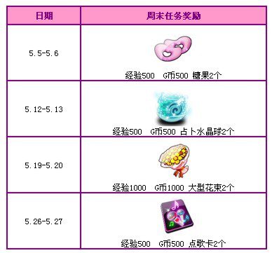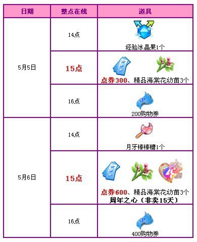 5.5-5.6每天14至16點雙倍經驗+雙倍G幣+四倍寵物經驗。