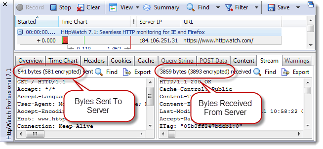 其次,建立HTTPS連接,要求額外的TCP往返,因此會新增一些發送和接收的字節。但是,從下圖可以看到,新增的字節是很少的。