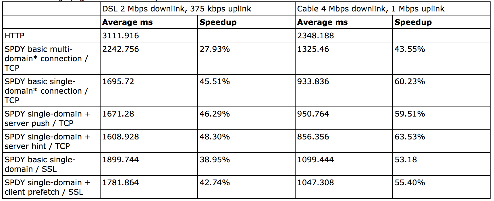 SPDY的成績可以用google官方的一個數字來說明:頁面加載時間相比于http1.x減少了64%。而且各大瀏覽器廠商在SPDY誕生之后的1年多里都陸續支持了SPDY,不少大廠app和server端框架也都將SPDY應用到了線上的產品當中。