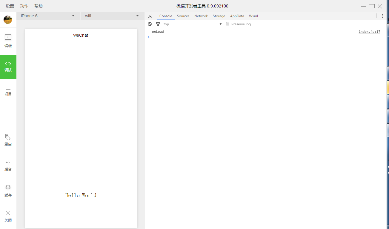 我們點(diǎn)擊最右上角按鈕,與選擇顯示console,查找文件,快捷鍵,以及傳感器,渲染設(shè)置,幫助等。在左下角有清楚緩存,重啟小程序,按鈕。