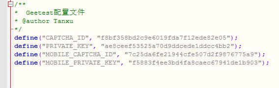 如果在移動端部署,則將MOBILE_CAPTCHA_ID和MOBILE_PRIVATE_KEY后面的字符串替換成自己在后臺注冊的ID和Key。
