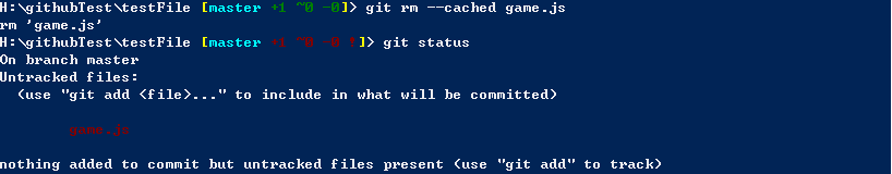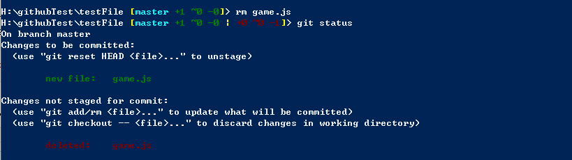 可以看到,工作區中的 game.js 刪除了,但是暫存區中的 game.js 還未刪除