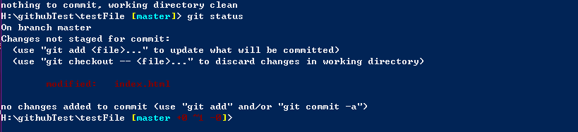 可以看到 index.html 修改了,但是還沒有提交到暫存庫,我們對這個文件進行撤銷操作