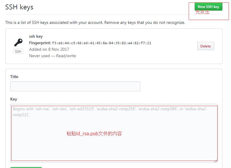 生成密匙:ssh-keygen -t rsa -C lpeinet@outlook.com"(后面的是自己的郵箱)按3個回車 密碼為空,最后ssh文件夾中多出了2個文件d_rsa和id_rsa.pub,這樣密匙就生成成功了。