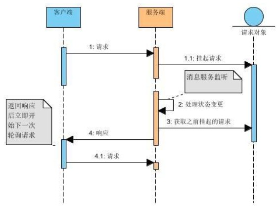 本質(zhì)上沒有改變,依然是客戶端在沒有收到自己想要數(shù)據(jù)的情況下不斷發(fā)送請求給服務(wù)端,差別在于服務(wù)端收到請求不再直接給響應(yīng),而是將請求掛起,自己去定時判斷數(shù)據(jù)的變化,有變化就立馬返回給客戶端,沒有就等到超時為止。
