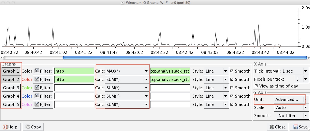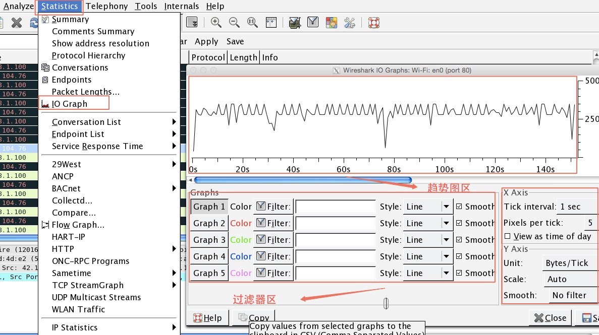 通過“Statistics”菜單中的“IO Graphs”選項可以打開這個IO圖對話框。如下圖: