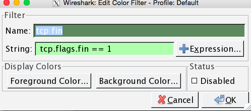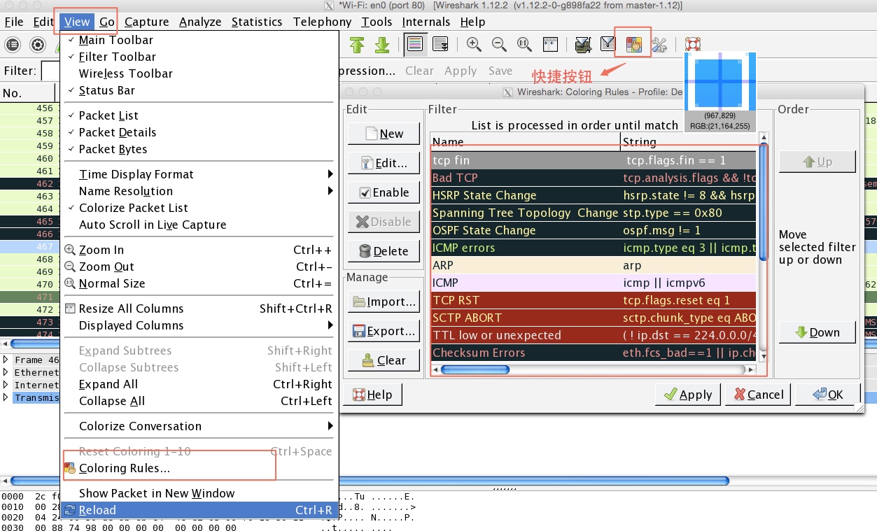 wireshark使用著色規則