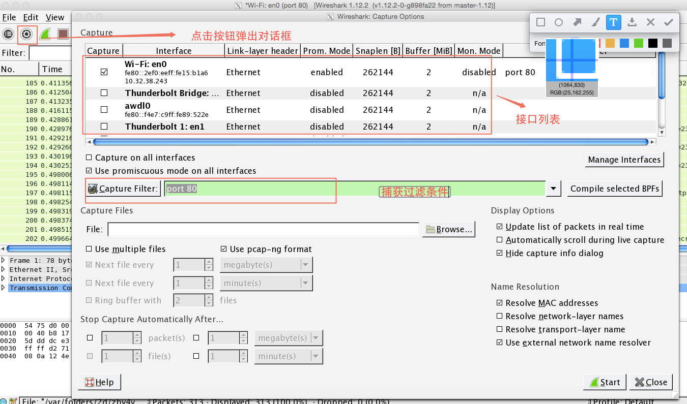 以下的介紹都是以mac下的wireshark 1.12.2版本為基礎。