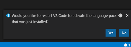 此時(shí)如果有彈窗出現(xiàn)提示下載中文包直接下載重啟VS即可,如果沒有提示則需要我們手動(dòng)下載語言包