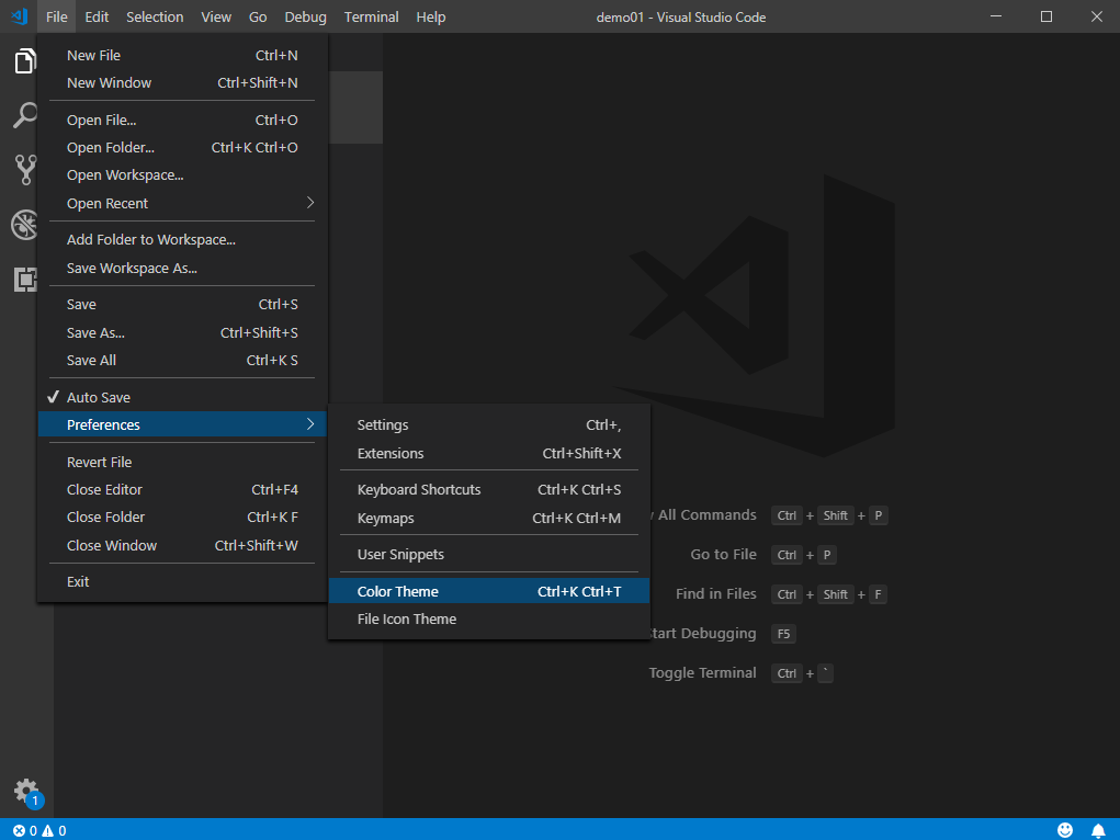 File(文件)- Preferences(首選項)- Color-Theme (顏色主題)