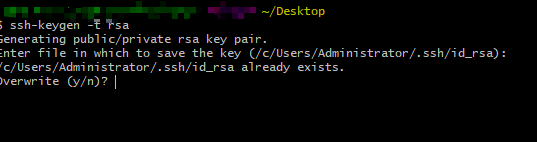 即可生成秘鑰對,默認路徑在C:/Users/Administrator.ssh,圖中也已經指出了