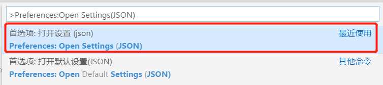 其次,在VSCode界面,按快捷鍵:ctrl + Shift + p,召喚出搜索,并輸入Preferences: Open Settings(JSON)
