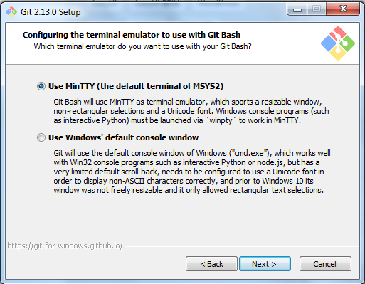 7.設置環境,選擇使用什么樣兒的命令行工具,一般情況我們使用默認配置,使用Git Bash,點擊【Next >】