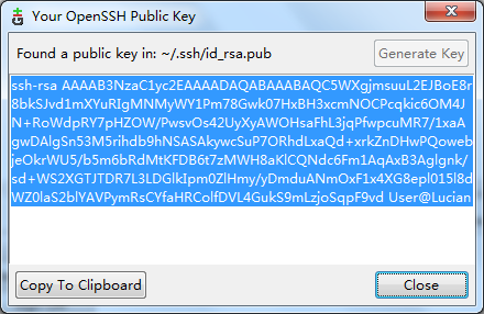 這種方式需要進行授權(quán)設(shè)置,在Git Gui的菜單欄,點擊Help->Show SSH key->Generate SSH KEY創(chuàng)建密鑰。
