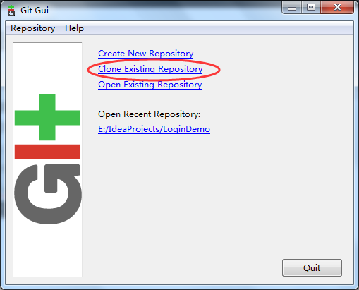 在Git Gui的主界面選擇克隆已有版本庫。
