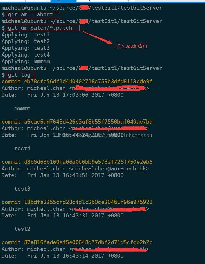 git am 可以一次合并一個文件,或者一個目錄下所有的patch,如下圖所示: