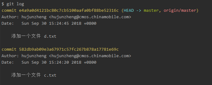 分別添加c.txt 和 d.txt兩個文件,分別進行add、commit、push