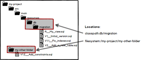 除了需要指定Location外,Flyway對Migrations的掃描還必須遵從一定的命名模式,Migration主要分為兩類:Versioned和Repeatable。