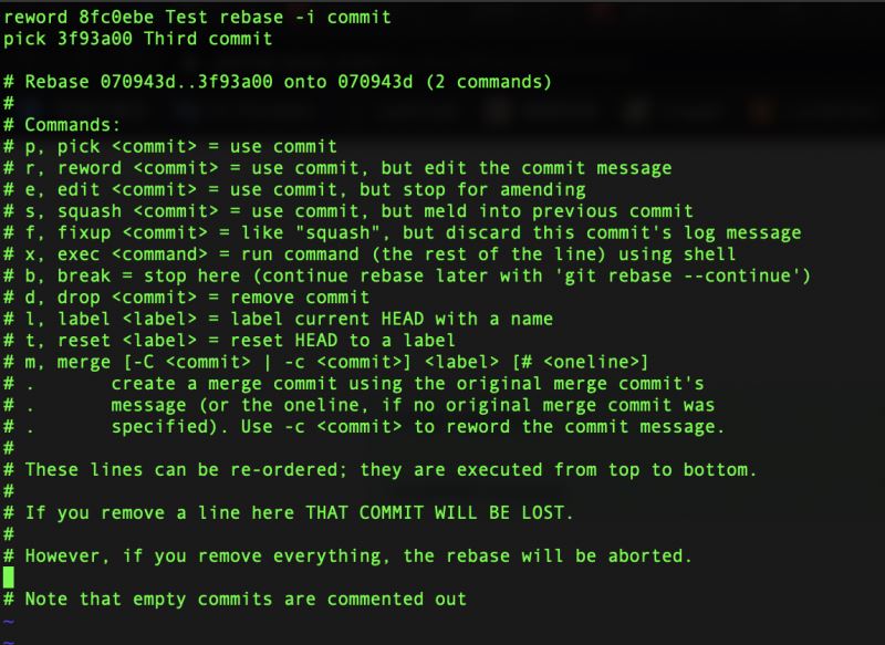 # 將指定分支合并到當前分支git rebase branch-name# 執行commit id 將rebase 停留在指定commit 處git rebase -i commit-id# 執行commit id 將rebase 停留在 項目首次commit處git rebase -i --root