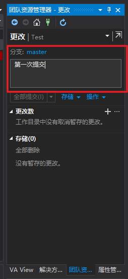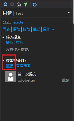 2、在VS中的同步功能測試――點擊同步/推送是否等同于(同步/推送+提交)呢?