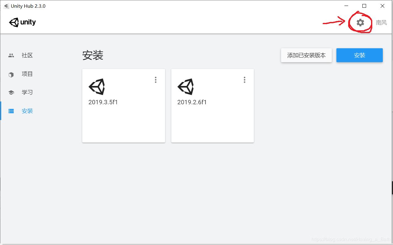 3. 點擊如下圖所示的設置按鈕,選擇你安裝的路徑,這里要注意的是,如果你想安裝多個版本的unity,你就需要多次點開這里更換路徑,否則新安裝的版本就會不斷的覆蓋之前安裝的版本