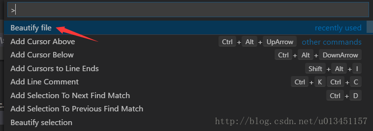 打開要格式化的文件 ―> F1 ―> Beautify file ―> 選擇你要格式化的代碼類型
