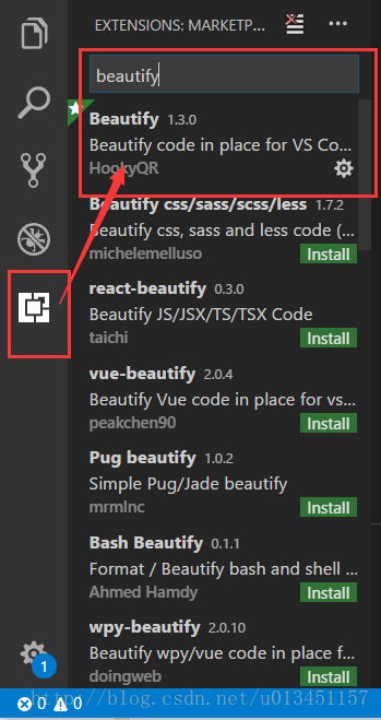 搜索并安裝 Beautify 格式化代碼插件