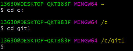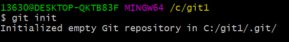 我在C盤下創建文件夾git1,當作我的本地倉庫,在git bash中打開:
