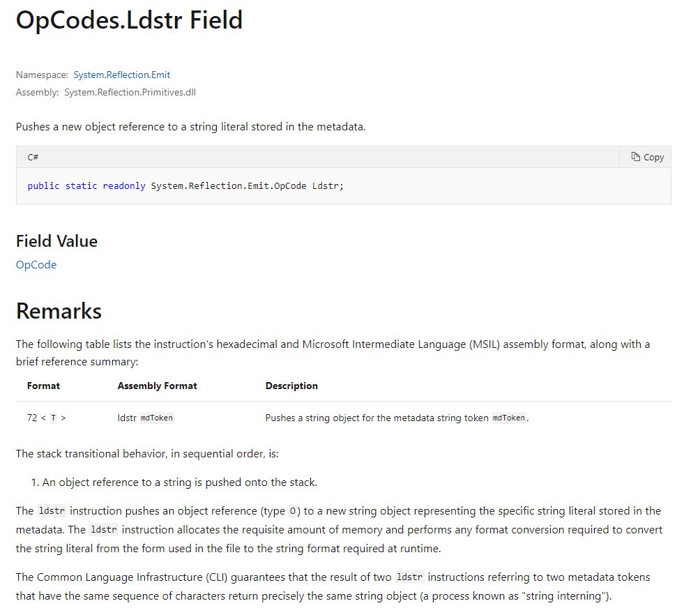 Microsoft 技術支持文檔中 ldstr 的解釋