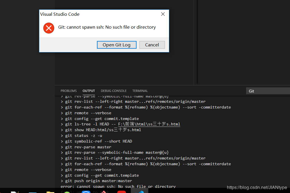 然后當我使用vscode的push命令時 就出現如下錯誤