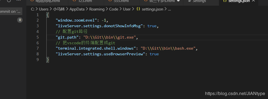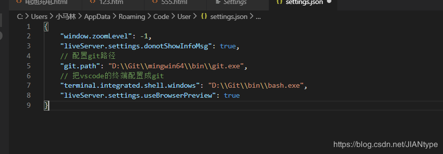 今天給vscode配置git的時候,差點沒把我送走,我在配置git項目的時候會,看了一個博客文章的教學,其中配置路徑的方法如下