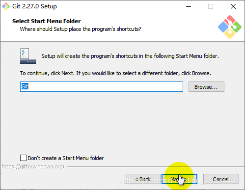 5、選擇開始菜單文件夾,此處就默認,之后選擇【Next】。