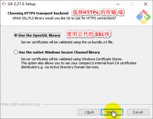 8、選擇 HTTPS 的傳輸端,默認使用【Use the openSSL library】,點擊【Next】。