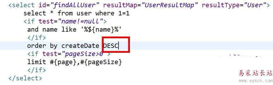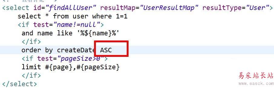 5、在usermapper.xml文件中,發現下圖紅色框位置為asc。