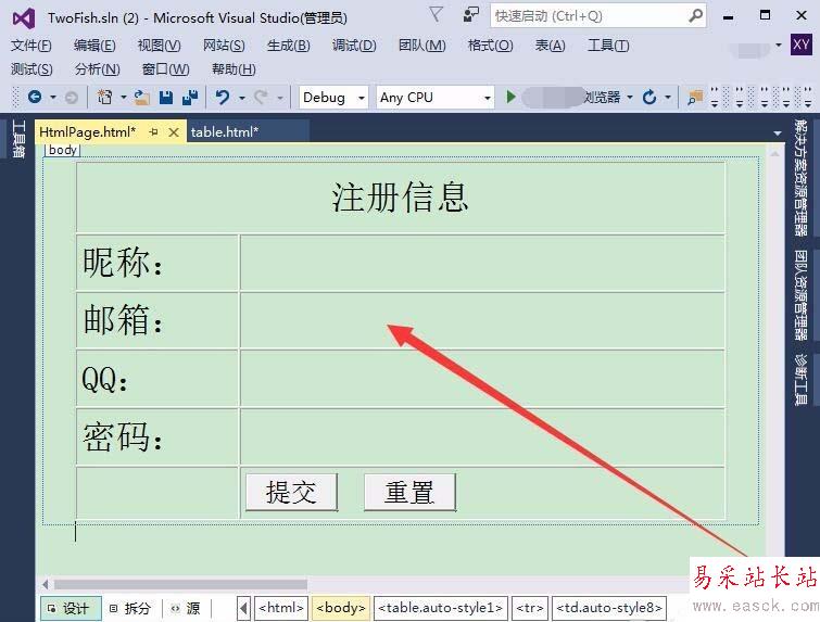 VisualStudio2015中農(nóng)想要設(shè)計(jì)一個(gè)注冊(cè)信息頁面,該怎么設(shè)計(jì)呢?下面我們就來看看html網(wǎng)頁的選項(xiàng)可以填寫在表格里的制作方法,請(qǐng)看下文詳細(xì)介紹。