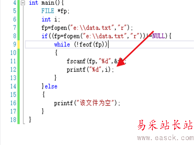5、第五然后用fscanf函數(shù)將數(shù)據(jù)接收。再將數(shù)據(jù)輸出給變量i。