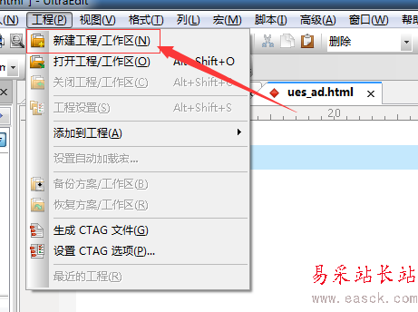 2、點擊了UltraEdit菜單的工程之后,彈出了下拉菜單中選中為“新建工程/工作取”的選項。