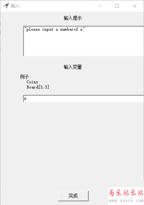 3、在輸入框上方輸入 "please input a number of x" 下方輸入 x。