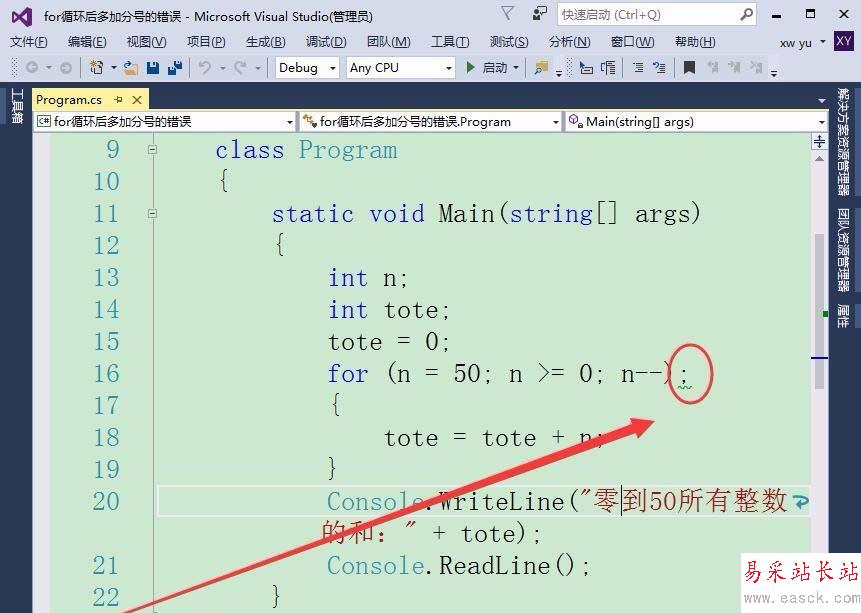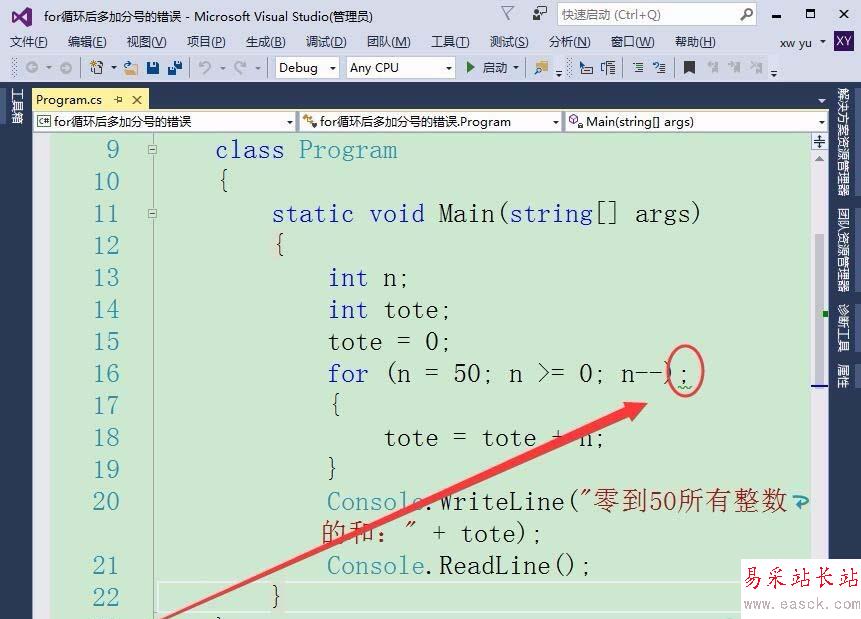 Visual Studio編程的時候經常使用for循環語句,每個語句后一般要加分號,如果在For循環后多加一個分號,會出現什么結果呢?下面我們就來看看詳細的教程。