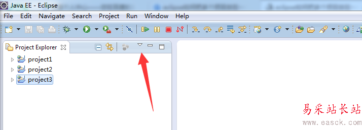 2、在Package Explorer中右側可以看到倒三角的一個圖標,并點擊三角圖標