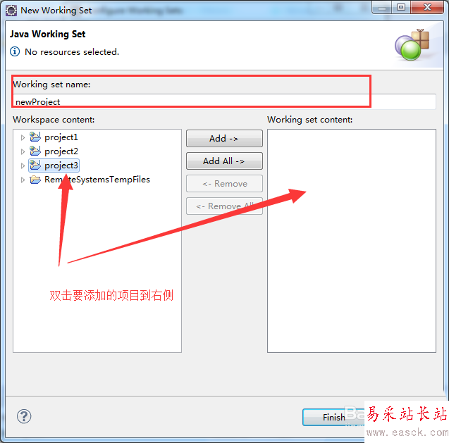 6、彈出窗口中點擊new按鈕設置新的文件夾,彈出窗口設置新的文件夾名稱和需要添加的項目到文件夾中,添加完成項目點擊finish