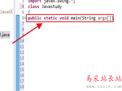 4、第四然后還要在類中輸入主函數代碼。為public static void main(String[] args){分括號里面}。