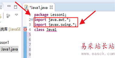 3、第三然后在class類的上面打入兩行代碼。分別是imports java.awt.*和imports javax.swing.*。