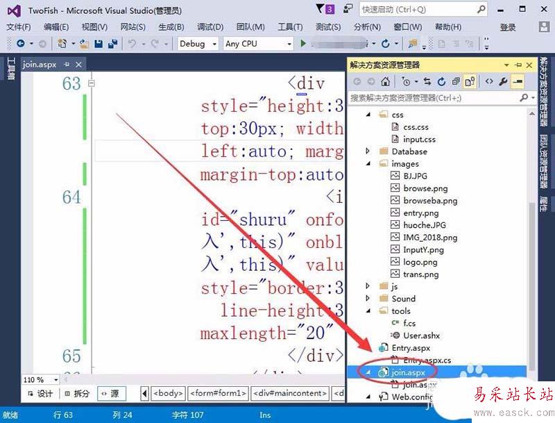 1、用Visual studio軟件打開一個已有的網頁,本例為join.aspx。